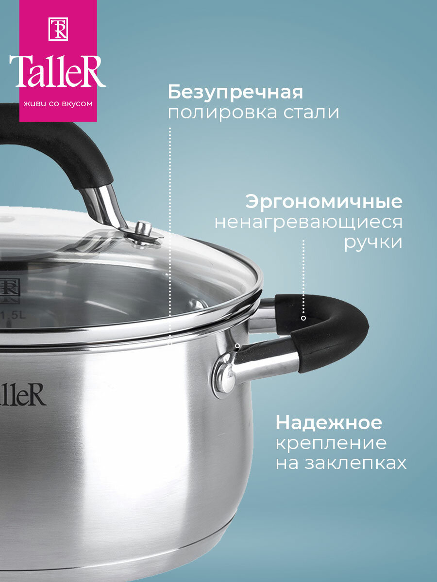 Купить Кастрюля с крышкой TalleR TR-11044 Шелборн 2.2 л, для всех типов плит с доставкой по всей России. Кастрюля с крышкой TalleR TR-11044 Шелборн 2.2 л, для всех типов плит: сравнение цен, характеристики, фото, актуальное наличие и цены.