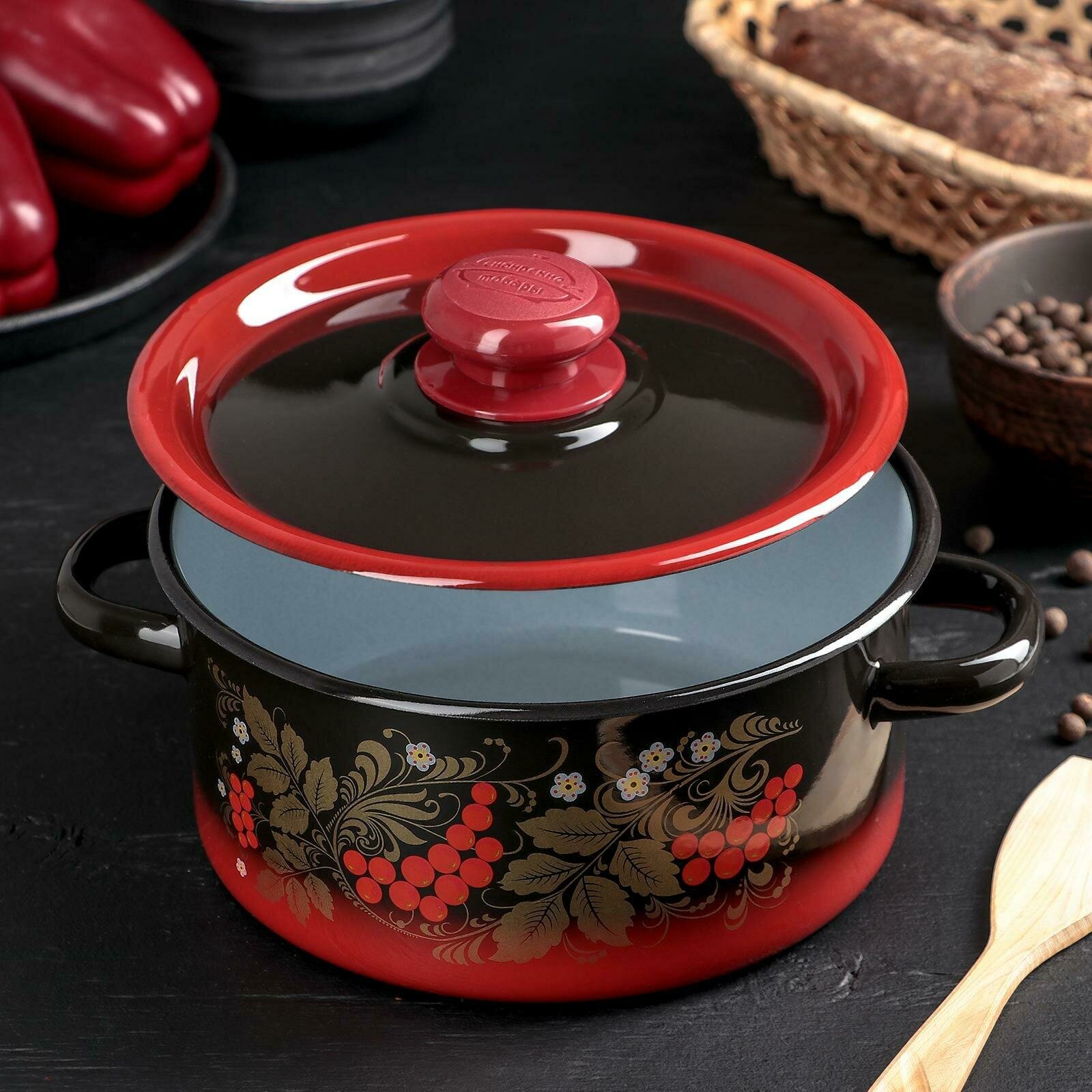 Купить Кастрюля Сибирские товары микс, эмалированная, для индукции, 2л, с крышкой с доставкой по всей России.