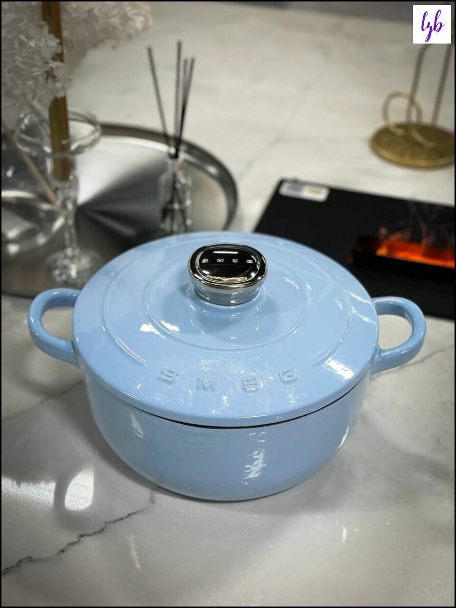 Купить Эксклюзивная чугунная кастрюля Smeg 4.2 л в голубом цвете с антипригарным покрытием с доставкой по всей России. Эксклюзивная чугунная кастрюля Smeg 4.2 л в голубом цвете с антипригарным покрытием: сравнение цен, характеристики, фото, актуальное наличие и цены.