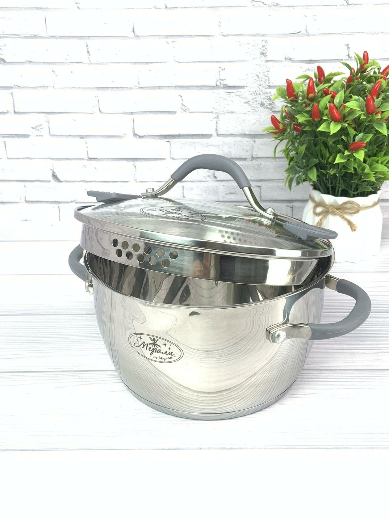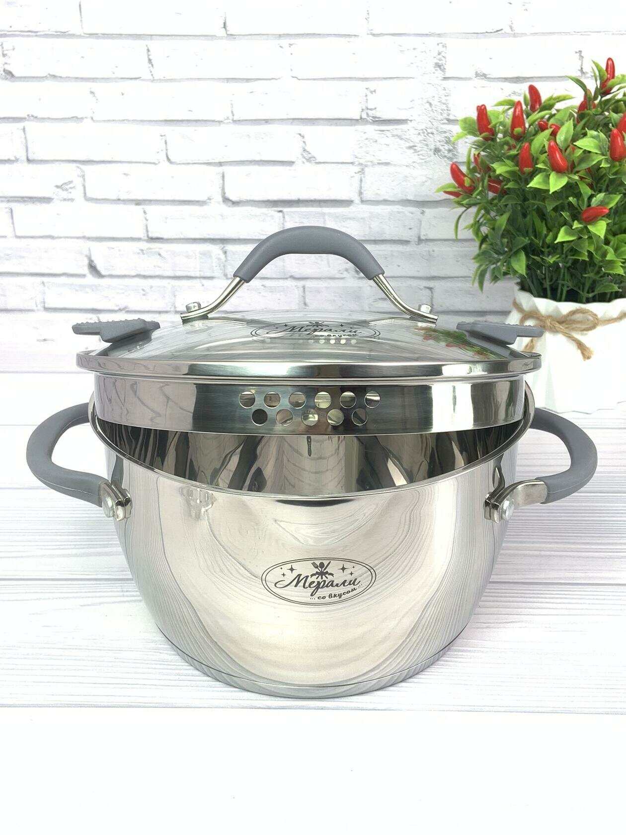 Кастрюля со сливом Мерали с крышкой-дуршлаг из нержавеющей стали для газовых электрических и индукционных плит 2,8 л: сравнение цен, характеристики, фото, актуальное наличие и цены.
