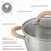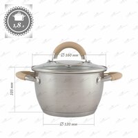 Купить Кастрюля со стеклянной крышкой 16 см из нержавеющей стали для газовой электрической и индукционной плиты 1,8 л с доставкой по всей России.