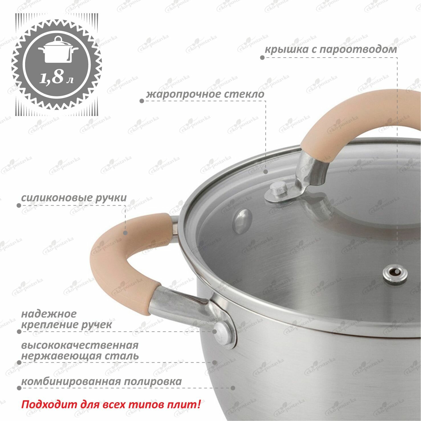 Кастрюля со стеклянной крышкой 16 см из нержавеющей стали для газовой электрической и индукционной плиты 1,8 л: сравнение цен, характеристики, фото, актуальное наличие и цены.