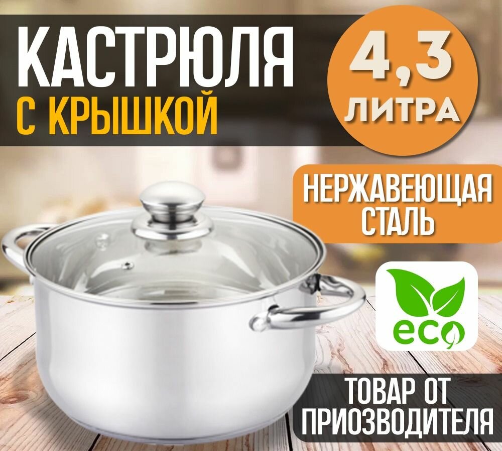 Купить Кастрюля со стеклянной крышкой для индукционной, газовой, электрической плиты 4,3л нержавеющая сталь, LRKA 007 с доставкой по всей России. Кастрюля со стеклянной крышкой для индукционной, газовой, электрической плиты 4,3л нержавеющая сталь, LRKA 007: сравнение цен, характеристики, фото, актуальное наличие и цены.