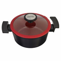 Кастрюля со стеклянной крышкой Neoflam De Chef 20 см De Chef – профессиональная серия корейской фирмы, которая сочетает в себе стильный дизайн, максимальную функциональность и надежность. Кастрюля изготовлена из литого алюминия с керамическим покрытием и специально нанесенным антибактериальным слоем Ecolon. Изделия обладают идеальными антипригарными свойствами, долговечностью, максимальной безопасностью для здоровья, так как даже при максимальной температуре не выделяют вредные вещества. Благодаря всем перечисленным качествам, посуда подходит для ежедневного использования. Как материал, так и покрытие полностью соответствуют нормам и требованиям, которые предъявляются к материалам, вступающим в контакт с продуктами. Высокая прочность керамического покрытия позволяет использовать в процессе приготовления неострые металлические предметы. Алюминиевый корпус обеспечивает равномерный нагрев и не деформируется. Ручки не нагреваются и предотвращают выскальзывание изделия из рук. Крышка кастрюли изготовлена из прочного закаленного стекла с силиконовым ободом, обеспечивающим плотное прилегание крышки к кастрюле (имеется отверстие для выхода пара). Изделие легко моется, допускается использование посудомоечной машины.