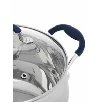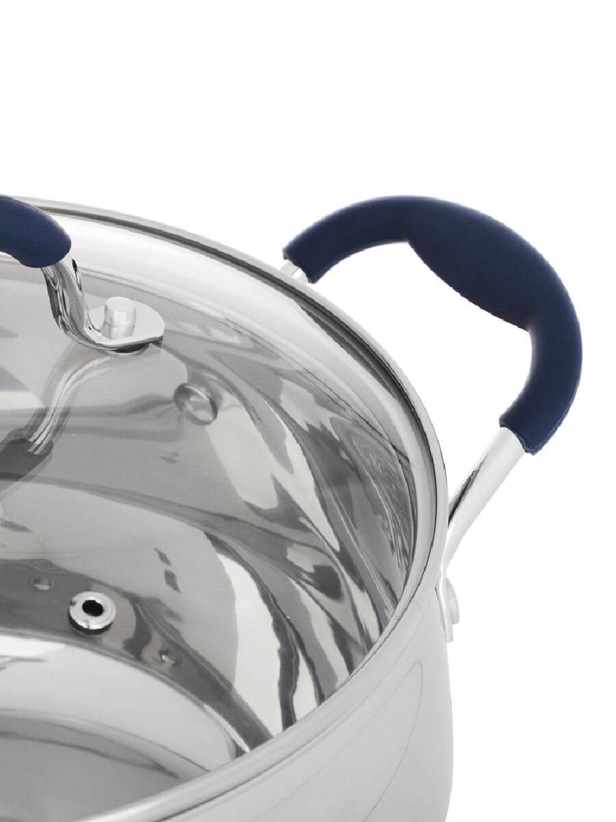 Удобные ручки с силиконовыми накладками обеспечивают надежный захват и защиту от ожогов. Силиконовые накладки не нагреваются, позволяя без опаски переносить горячую кастрюлю с плиты на стол. Эргономичная форма ручек обеспечивает комфортное использование даже при большом весе содержимого.