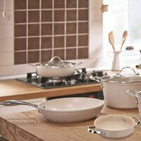 Кастрюля сотейник со стеклянной крышкой, казан низкий Korkmaz Granita 4л, 28 см, для всех типов плит, бежевый гранит, Турция: сравнение цен, характеристики, фото, актуальное наличие и цены.