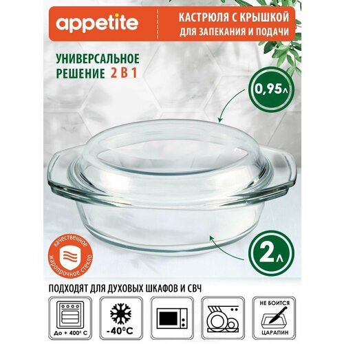 Кастрюля стеклянная Appetite объемом 2,0 литра - это незаменимый помощник на вашей кухне. Изготовленная из жаропрочного боросиликатного стекла, она прекрасно подходит для запекания и хранения продуктов.