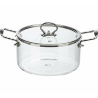 Кастрюля Italiano из жаропрочного боросиликатного стекла подходит для всех типов плит (включая газовые), кроме индукционных, ее можно использовать в духовом шкафу. Можно мыть в посудомоечной машине. Применяется для приготовления различных блюд. Материал: жаропрочное боросиликатное стекло; Материал крышки: жаропрочное боросиликатное стекло, нержавеющая сталь; Материал ручек: нержавеющая сталь; Диаметр: 19,5 см; Толщина стенок: 4,1 мм; Объем: 3,5 л. Оригинальный дизайн отлично впишется на вашей кухне, а возможность готовить на любой плите (как газовой, так и электрической), делает кастрюлю универсальной. Жаропрочное боросиликатное стекло невозможно повредить при варке. Готовить в ней – одно удовольствие. Стеклянная посуда позволяет видеть степень готовности любого продукта. Особенно это важно для приготовления каши или других детских блюд. Такой подарок для кухни оценит каждая хозяйка. Прозрачная посуда не оставит равнодушной хозяек, желающих улучшить качество своих блюд. Стекло не портит вкус, не ржавеет и всегда остается в идеальном состоянии. С кастрюлей в наборе идёт крышка из такого же материала с пароотводом, что позволит сохранить чистоту вашей плитки и убережёт от случайных ожогов паром при проверке блюда на готовность. Можно готовить в духовке. К тому же, видеть как в прозрачной кастрюле на кухне с выключенным светом подсвеченные синим пламенем газа, болтаются пельмени - одно удовольствие.