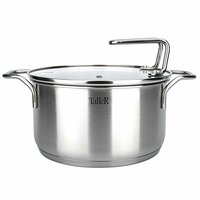 Кастрюля TalleR «Иннес» TR-17257 объемом 3 л подходит для использования на любых варочных поверхностях, в том числе на индукционных, а также для хранения готовой пищи и продуктов в холодильнике. Материалы, из которых сделана посуда, — нержавеющая сталь, алюминий и железо. Есть антидеформационный диск. Толщина стенок — 0,6 мм, дна — 4 мм. В комплекте идет прозрачная крышка с металлической ручкой и клапаном для выпуска пара. Допускается очистка в посудомоечной машине. Диаметр — 20 см, высота — 22,5 см, вес — 1,826 кг.