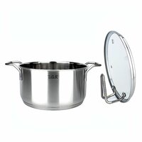 Кастрюля выполнена из нержавеющей стали - 18/10. Капсулированное дно для равномерного распределения тепла. Полировка внешняя - матовая, внутренняя - матовая. Есть отметки литража.