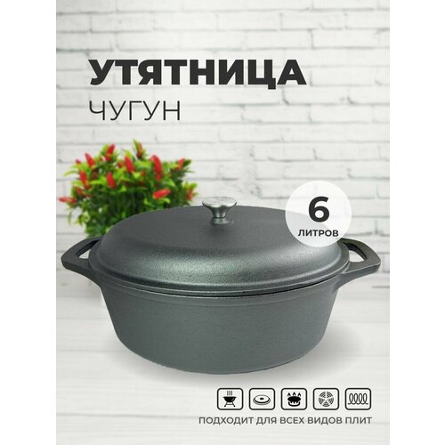 Чугунная утятница с крышкой объемом 6 литров станет незаменимым помощником на вашей кухне. Изготовленная из литейного чугуна, она обладает высокой прочностью и долговечностью, а также равномерно распределяет тепло, что позволяет готовить разнообразные блюда на всех видах плит, включая индукционные.