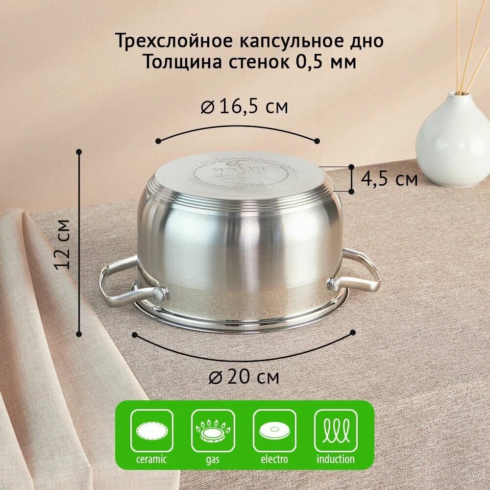 Купить Кастрюля Vetta «Берн», 3.5 л, диаметр 20 см, нержавеющая сталь, серебристая с доставкой по всей России. Кастрюля Vetta «Берн», 3.5 л, диаметр 20 см, нержавеющая сталь, серебристая: сравнение цен, характеристики, фото, актуальное наличие и цены.