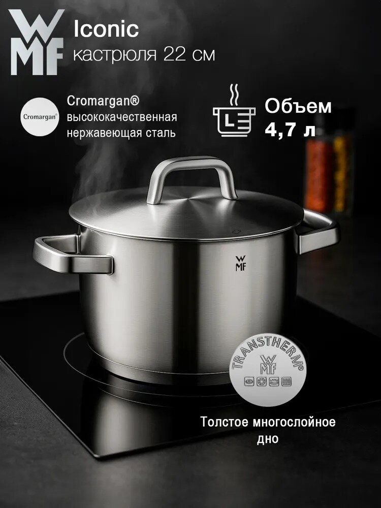 Кастрюля WMF Iconic, нержавеющая сталь, с толстым дном, для всех типов плит 22 см, 4,7 л: сравнение цен, характеристики, фото, актуальное наличие и цены.