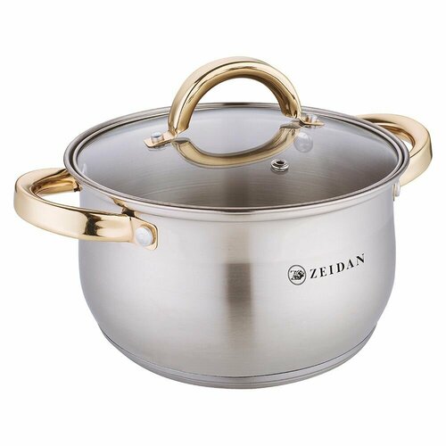 Zeidan – современная посуда и аксессуары для кухни. Посуда ZEIDAN – это сочетание новейших технологий производства, оригинальных дизайнерских решений и традиционно высокого качества исполнения. Мы предлагаем широкий выбор посуды из материалов исключительно высокого качества: нержавеющей стали, алюминия, керамики и стекла. Посуда ZEIDAN из нержавеющей стали прочна и абсолютно безопасна для здоровья, она не окисляется и не образует соединений с компонентами пищи. Благодаря многослойному термоаккумулирующему дну, пища в такой посуде готовится намного быстрее и дольше остается горячей. Посуда ZEIDAN из алюминия обеспечивает равномерное распределение и длительное сохранение тепла посуды. Вы можете готовить с использованием минимального количества масла и жиров, сохраняя при этом естественный вкус продуктов. В посуде ZEIDAN используются последние технологические новинки: различные виды антипригарных покрытий, индукционное дно, многослойное капсулированное дно, клепочное крепление ручек и многое другое. Посуда ZEIDAN. Готовьте здорово! Кастрюля ZEIDAN Z-501080 5,1 л с крышкой, Кастрюля со стеклянной крышкой - 5,1 Л (d22 см), нержавеющая сталь, 5-ти степовое капсулированное индукционное ДНО, крышка - стекло, ручки на корпусе и крышке "под золото", комбинированная полировка снаружи, матовая полировка внутри. Подарочная упаковка.