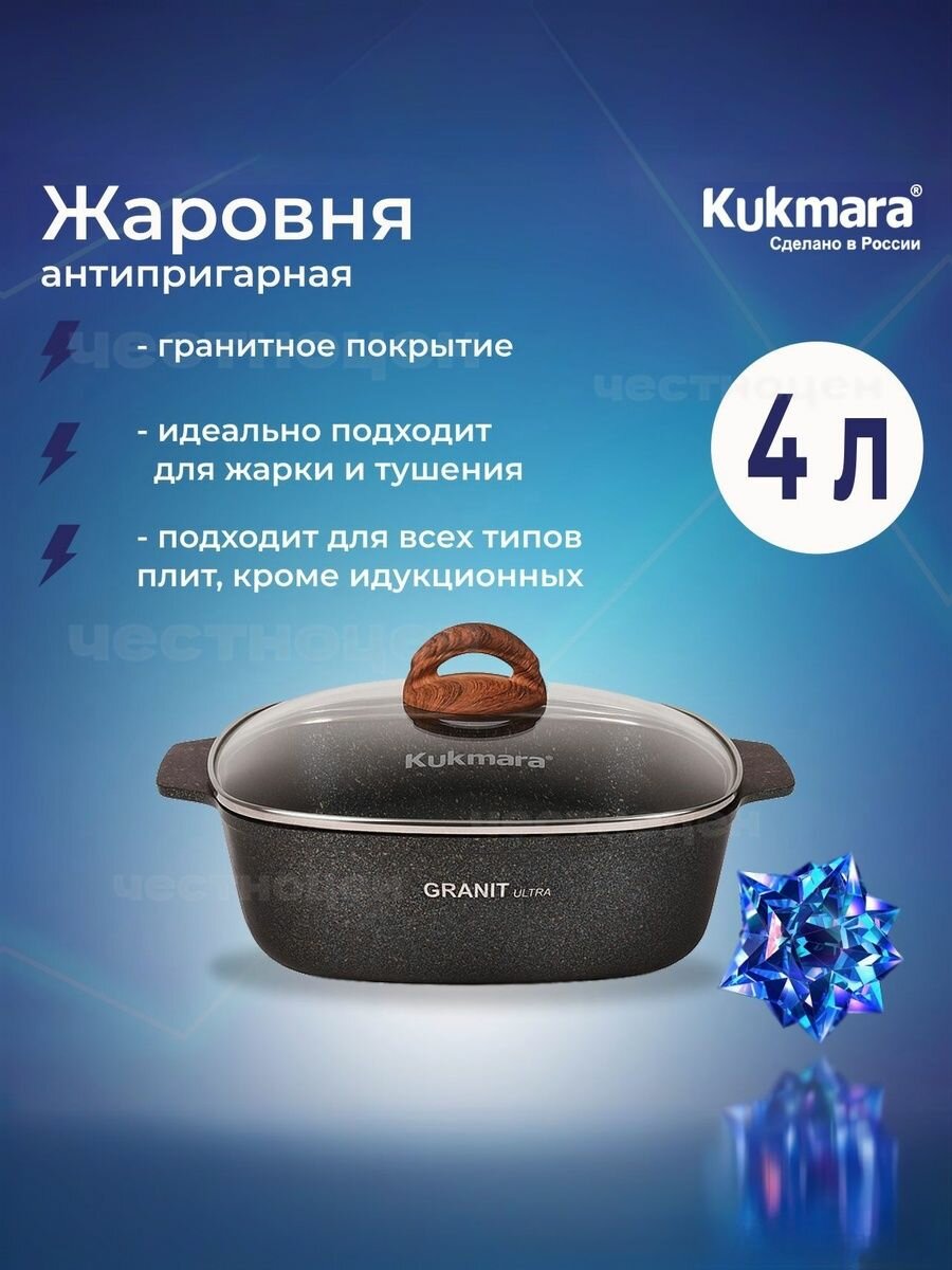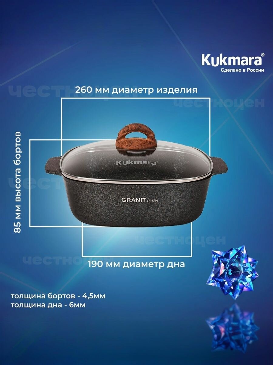 Кастрюля-жаровня Kukmara 4л квадратная 26х26см с крышкой, «Granit ultra» (original) жкго42а: сравнение цен, характеристики, фото, актуальное наличие и цены.