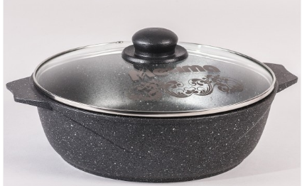 Жаровня с антипригарным покрытием Гранит от немецкой марки Greblon является полностью безвредным для вашего здоровья при готовке ваших любимых блюд. Жаровня подходит для всех видов плит, кроме индукционных. После готовки можно мыть посуду в посудомоечной машинке.