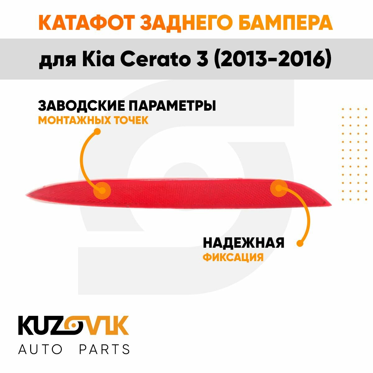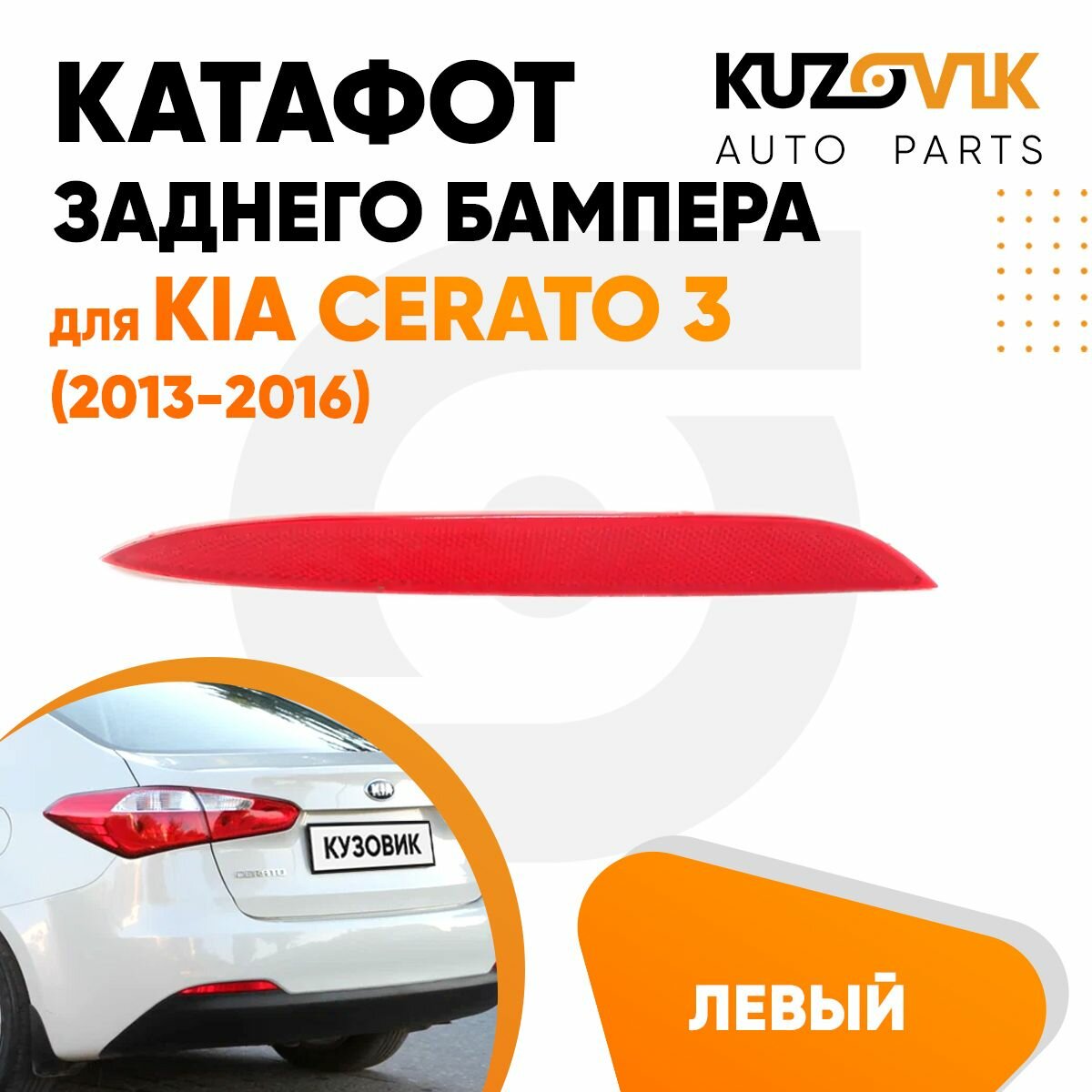 Катафот отражатель заднего бампера левый для Киа Церато Kia Cerato 3 (2013-2016), фонарь, новый, заводское качество, атмосферостойский пластик: сравнение цен, характеристики, фото, актуальное наличие и цены.