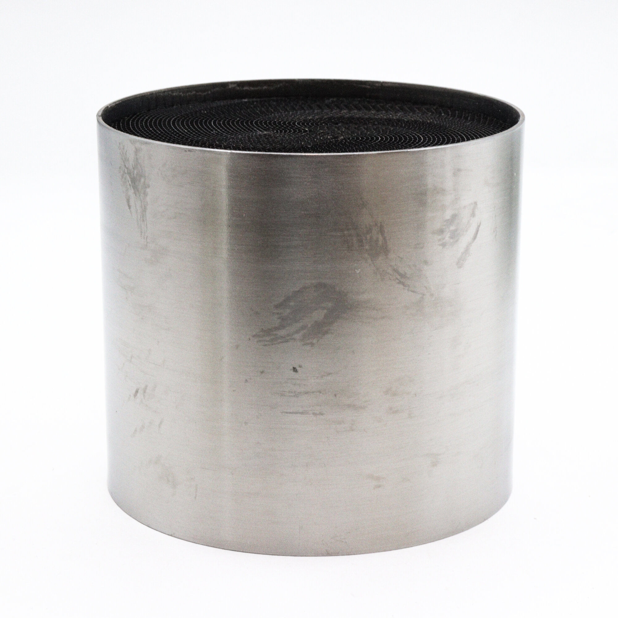 Корпус катализатора изготовлен из нержавеющей стали AISI 441 марки, которая обладает высокими антикоррозийными свойствами, устойчива к химическим и термическим воздействиям, а также хорошо варится. Ячейки катализатора выполнены из сплава железа, хром и алюминия, что обеспечивает их долговечность и надежность. НЕ содержит напыление из драгоценных металлов.