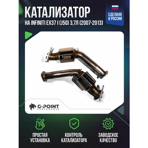 Катализатор на Инфинити EX37 I (J50) (2007-2013) 3.7л, 220/230л. с. VQ37VHR от G-Point подойдёт как альтернатива оригинальной детали. Он состоит из прочного коллектора с качественным катализатором внутри. Деталь выполнена из нержавеющей стали. Для замены катализатора на Infiniti EX37 I (J50) мы предлагаем коллекторы, созданные на основе немецких блоков Emitec. Это металлические блоки с драгоценным напылением. Катализатор для Инфинити EX37 I (J50) нашего производства – точная копия заводской детали вашего автомобиля. Как и другие детали из ассортимента G-Point, он создан с учётом всех особенностей данной модели. Катализатор произведён в заводских условиях, при установке не придётся колхозить. Если вас беспокоит ошибка «Check Engine», установка нового катализатора от G-Point поможет её убрать. После установки не будет неприятного запаха как у машины без катализатора и двигатель будет работать в штатном режиме. При этом вам не придётся тратиться на оригинальный коллектор и докупать к нему блок. Вместе они обойдутся дешевле, и вы также сэкономите на установке в сервисном центре. Преимущества катализатора для Infiniti EX37 I (J50) от G-Point: - Коллектор из прочной нержавейки, внутри устойчивый к выгоранию блок - 100% совместимость с креплениями авто - Лучшая цена на рынке - Возможность самостоятельного монтажа или установки в любом сервисе - Гарантия до 1 года - Товар от производителя Если вы не уверены, что данная деталь подойдёт для вашего авто, это можно проверить. Отправьте нам VIN-номер для проверки на совместимость. Артикул: GP-71103-71104 Эта модель катализатора также подходит для: - Infiniti G37 IV двиг. 3.7 VQ37VHR (2006-2013) - Infiniti FX II (S51) двиг. 3.7 VQ37VHR (2008-2013) - Infiniti M37 двиг. 3.7 VQ37VHR (2006-2013) - Infiniti Q50 I двиг. 3.7 VQ37VHR (2013-2020) - Infiniti Q70 I двиг. 3.7 VQ37VHR (2013-2020) - Infiniti QX50 I двиг. 3.7 VQ37VHR (2013-2017) - Infiniti QX70 I двиг. 3.7 VQ37VHR (2013-2017)