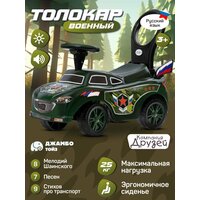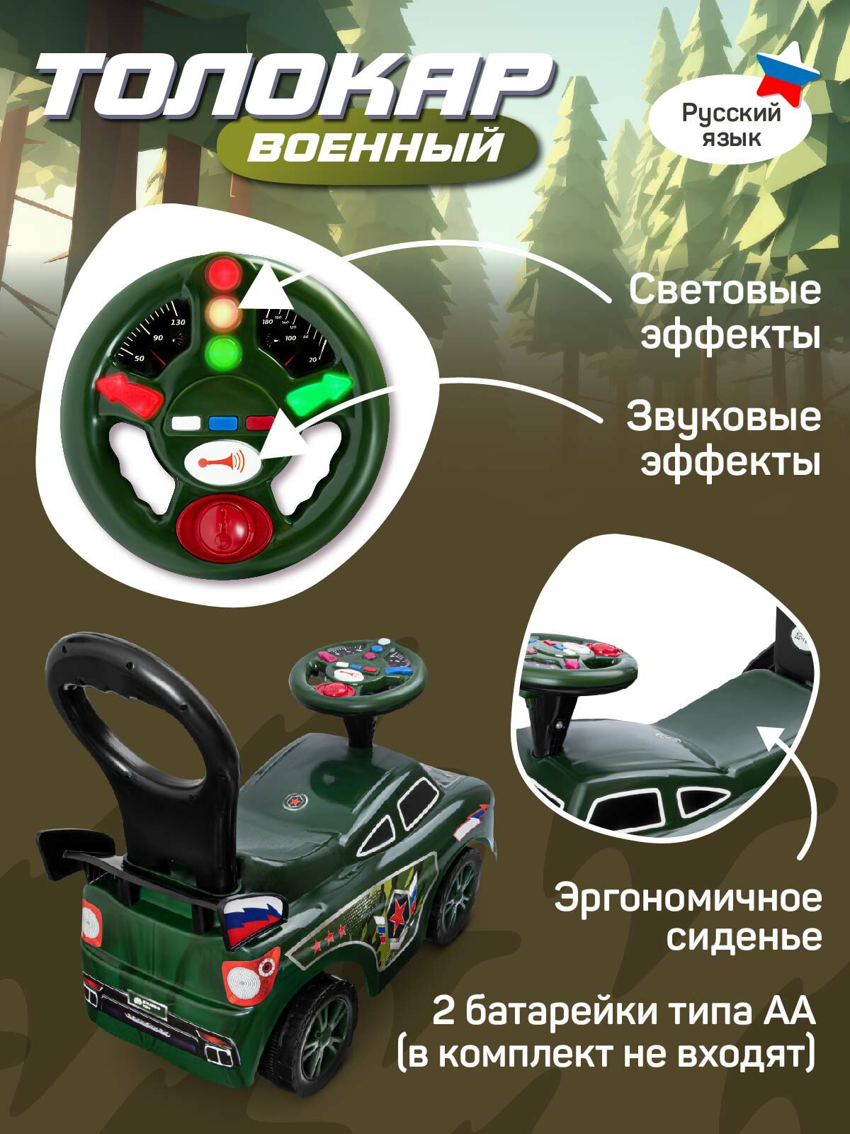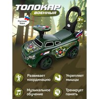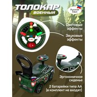 • Толокар выполнен в виде военного автомобиля, на нем можно кататься не только дома, но и на улице.