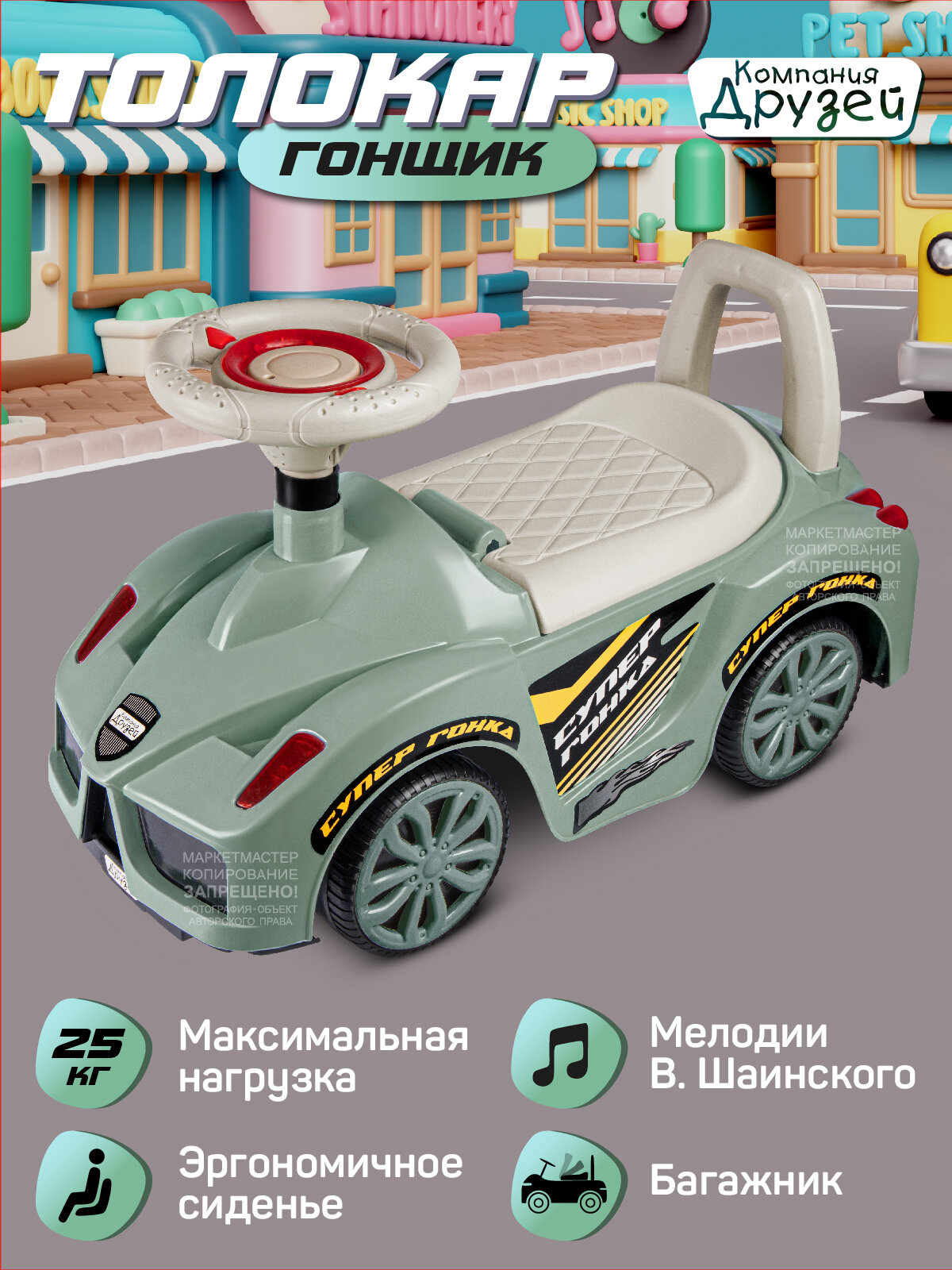 Купить Каталка детская толокар с мелодиями В. Шаинского, машина каталка для малышей, пушкар, ходунки, зеленый, JB5300683 с доставкой по всей России. Каталка детская толокар с мелодиями В. Шаинского, машина каталка для малышей, пушкар, ходунки, зеленый, JB5300683: сравнение цен, характеристики, фото, актуальное наличие и цены.