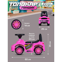 • При нажатии кнопки на руле воспроизводятся мелодии В. Шаинского из мультфильмов "Чунга-Чанга", "Если с другом вышел в путь", "Антошка", "Облака". • Толокар выполнен в виде гоночного автомобиля, на нем можно кататься не только дома, но и на улице. • Цветные наклейки, реалистичный дизайн, пластиковые фары, имитация спидометра и литых дисков сделают каталку по-настоящему любимой игрушкой. • Машинка-каталка легкая и простая в управлении. • Широкие пластиковые колеса придают устойчивость. • Удобное эргономичное сиденье выполнено с учетом особенностей строения детского тела. • Высокая спинка обеспечивает поддержку для спины и дополнительную безопасность при катании, а также служит малышу опорой при ходьбе. • Под сиденьем находится вместительный отсек, в котором можно перевозить любимые игрушки или небольшие предметы.