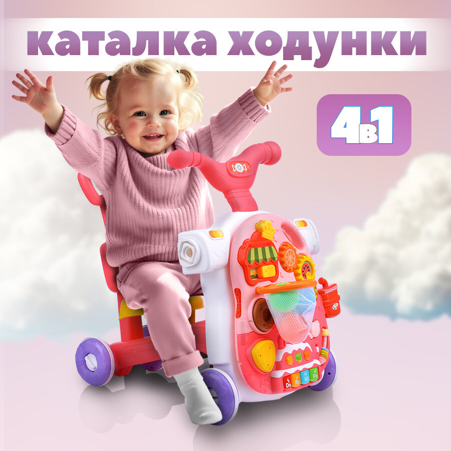 Купить Каталка-ходунки, игровой центр 4 в 1 для малышей (ходунки, каталка, самокат, игровой столик) с доставкой по всей России.