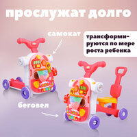 Каталка-ходунки, игровой центр 4 в 1 для малышей (ходунки, каталка, самокат, игровой столик)