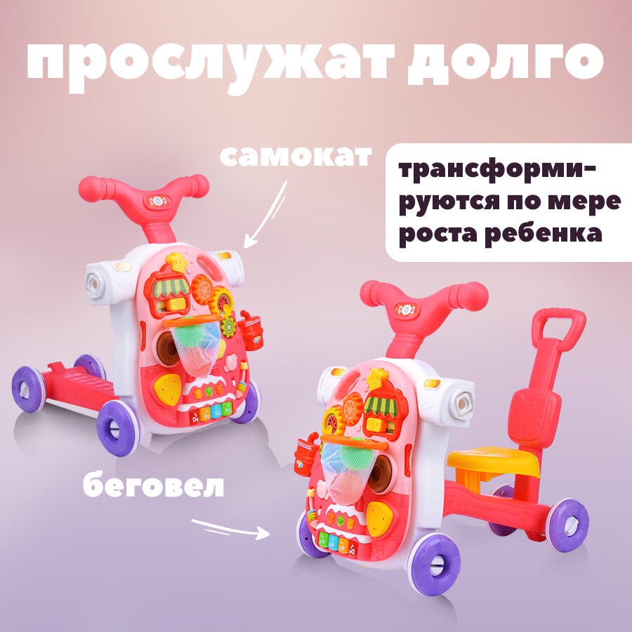 Каталка-ходунки, игровой центр 4 в 1 для малышей (ходунки, каталка, самокат, игровой столик): сравнение цен, характеристики, фото, актуальное наличие и цены.