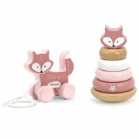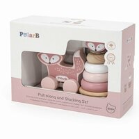 Каталка Polar B розовая на веревке, набор 2 в 1 с пирамидкой лисичкой, 4 съемных разноцветных бублика: сравнение цен, характеристики, фото, актуальное наличие и цены.