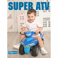 Каталка Babycare Super ATV суперлёгкая и очень надежная каталка Оригинальная каталка с большими колесами с кожаным сиденьем выполнена в виде квадроцикла. Описание: У каталки надежные 17-сантиметровые пластиковые колеса с рисунком на шинах. Удобное широкое сиденье обеспечивает комфортную посадку ребенка. Спинку сидения заменяет ручка, пользуясь которой, каталку можно толкать. Руль выполнен в эргономичном дизайне, удобном для руки ребенка: световые и звуковые сигналы 3 кнопки 2 песенки (батарейки в комплект не входят). Под сидением есть вместительный отсек, в который можно сложить разную мелочь. На задней части расположен стопор, защищающий каталку от опрокидывания. Характеристики: Размер каталки: длина 60 см, ширина 38 см, высота 42 см. Вес: 2,4 кг. Максимальная нагрузка: 27 кг. Размер колёс: 17 см. Размер упаковки: 60х25,5х30 см. Вес упаковки: 3,1 кг.