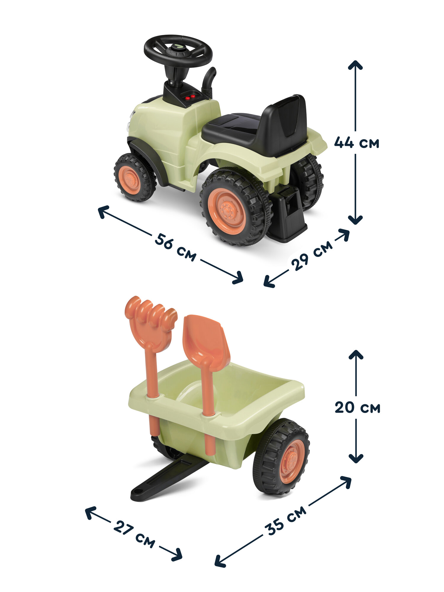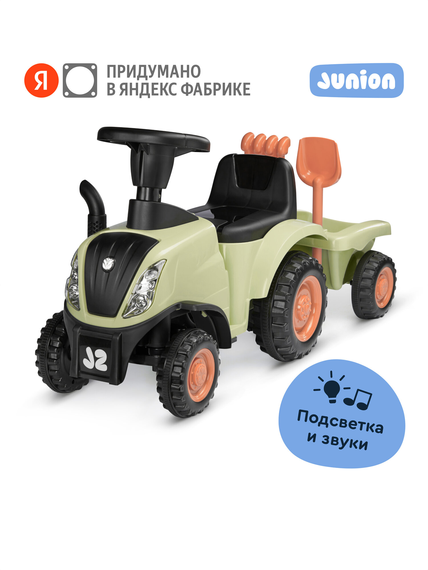 Каталка-толокар пушкар трактор с прицепом Junion Laslo, световые и звуковые эффекты, цвет: зеленый: сравнение цен, характеристики, фото, актуальное наличие и цены.