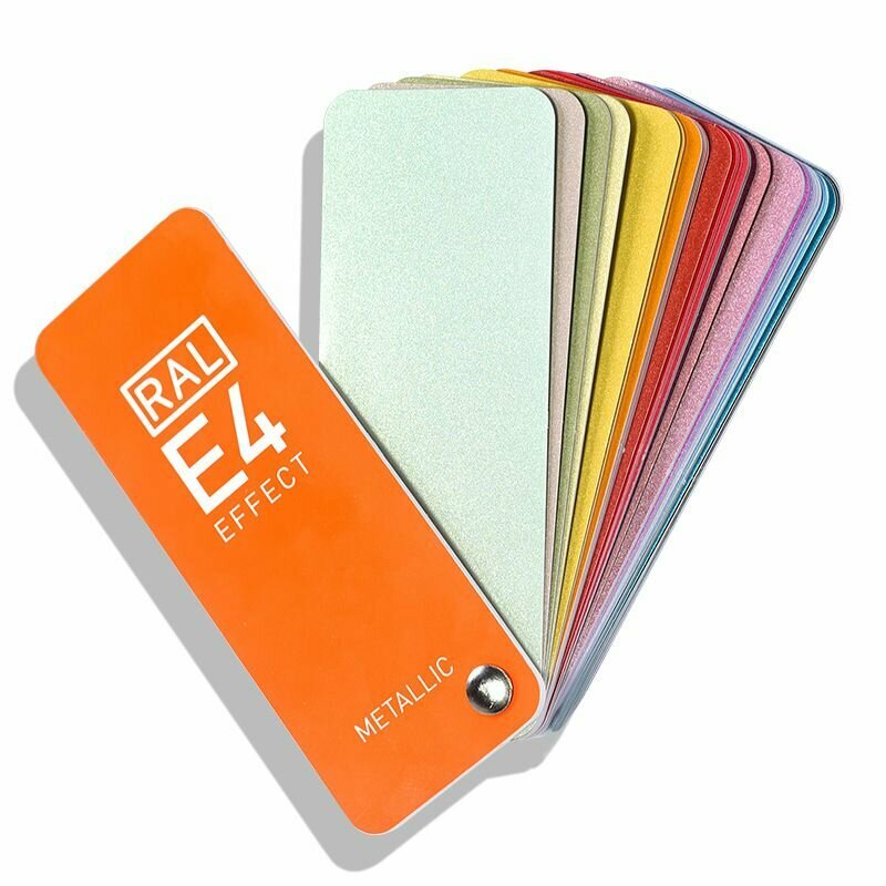 Этот продукт был недавно разработан и выбран из цветов с эффектом металла в RAL-EFFECT. Он собран в виде книги в форме веера. Вся книга богата 70 видами блестящих металлических цветов. Размер каждого цвета рассчитан на 13 см х 5,0 см, а он модифицирован в виде высокоглянцевого покрытия. Он подходит для выбора и применения дизайнерами, которые стремятся к созданию ослепительных промышленных изделий высокого класса.