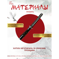 Рукоять катаны выполнена из пластика и обмотана нейлоновым шнуром. Рукоять и клинок соединяет гарда (цуба), изготовленная из цинкового сплава.