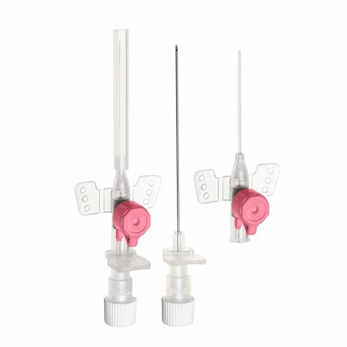 Заглушка имеет розовую цветовую кодировку размера (20G) согласно международному стандарту. Длина катетера 32 мм, наружный диаметр 1.1 мм, скорость потока 61 мл/мин.