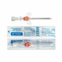 Прозрачная канюля катетера снабжена крыльями для фиксации катетера, коннектором Луер-Лок с защитным колпачком и дополнительным портом.