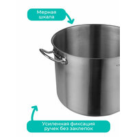 | Дополнительная информация | кастрюля и крышка из нержавеющей стали; капсульного дна нет; подходит для электрической, газовой, стеклокерамической и галогенной плит; не применяйте абразивные инструменты и сильнохлорированные моющие средства; не оставляйте пустую посуду на плите; во избежание образования белых пятен солите воду после закипания; если на поверхности изделия все же появились пятна, используйте для их удаления несколько капель уксусной или лимонной кислоты |