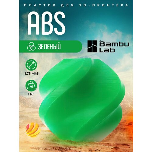 Bambu Lab ABS зеленого цвета - надежный материал для 3D-печати, известный своей стабильностью, долговечностью и высокой ударопрочностью.