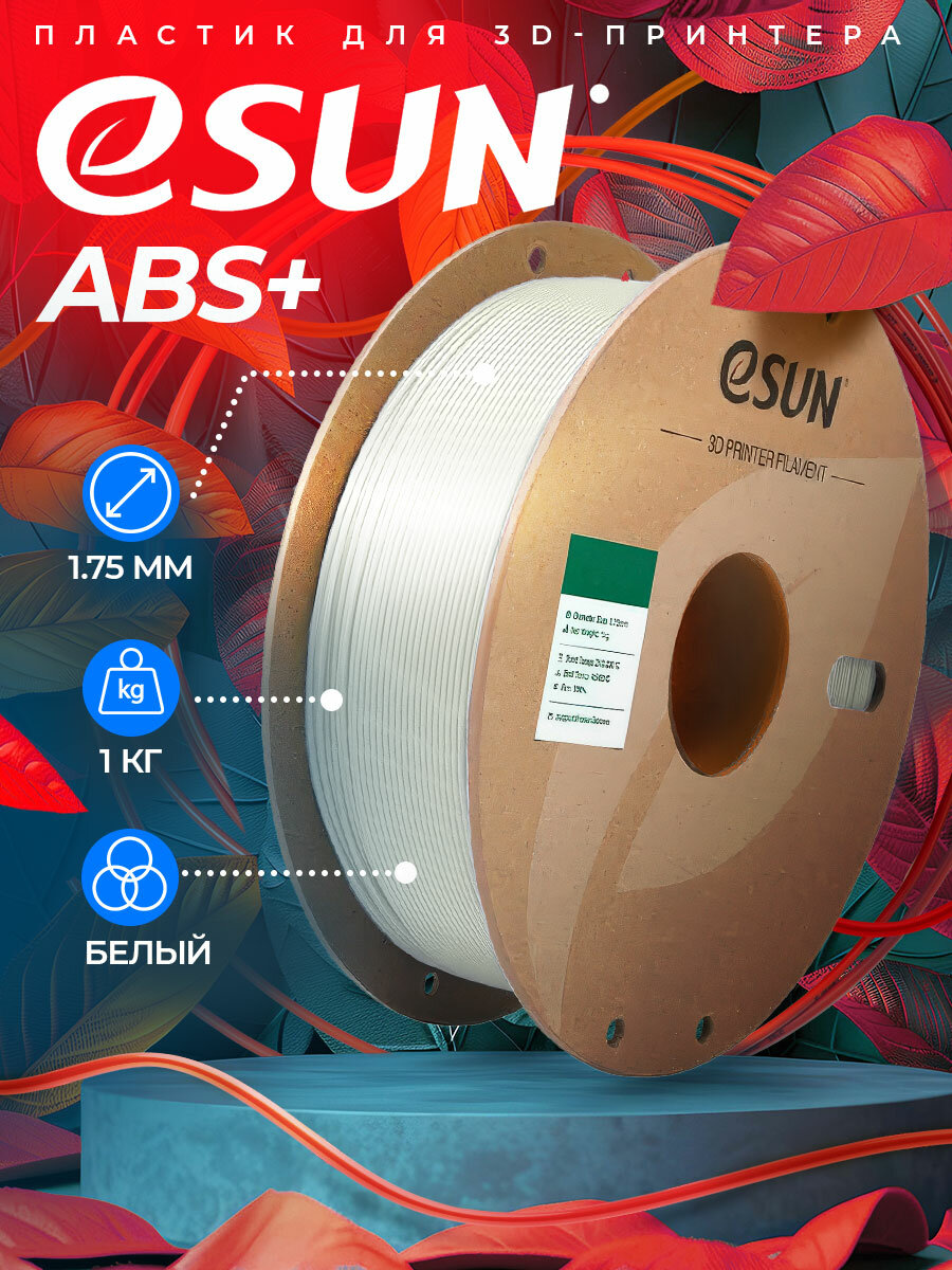 Катушка ABS+ пластика ESUN 1.75 мм 1кг, белая: сравнение цен, характеристики, фото, актуальное наличие и цены.