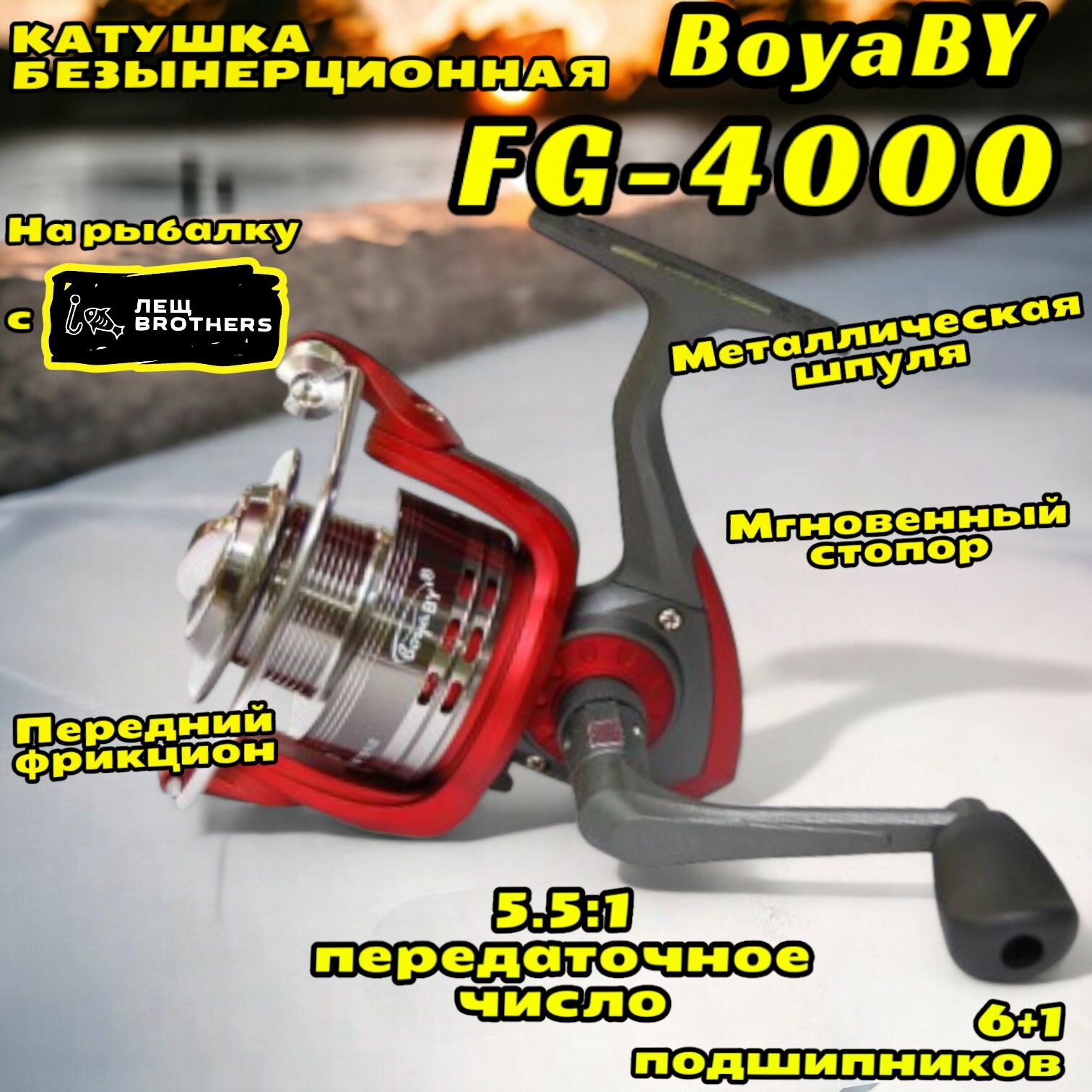 Катушка BoyaBY FG-4000, металлическая шпуля, ручка на кнопке, передний фрикцион, 6+1 подшипников, мгновенный стопор, передаточное число 5.5:1: сравнение цен, характеристики, фото, актуальное наличие и цены.