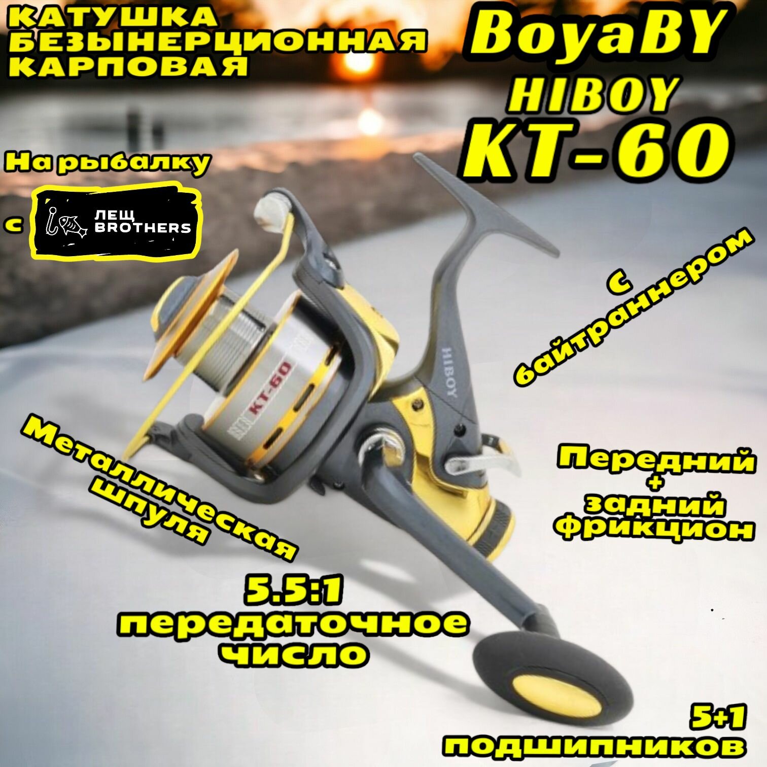Катушка BoyaBY HIBOY KT-60 карповая с байтраннером, металлическая шпуля, передний + задний фрикцион, ручка универсальная на кнопке, 5+1 подшипников, передаточное число 5.5:1: сравнение цен, характеристики, фото, актуальное наличие и цены.