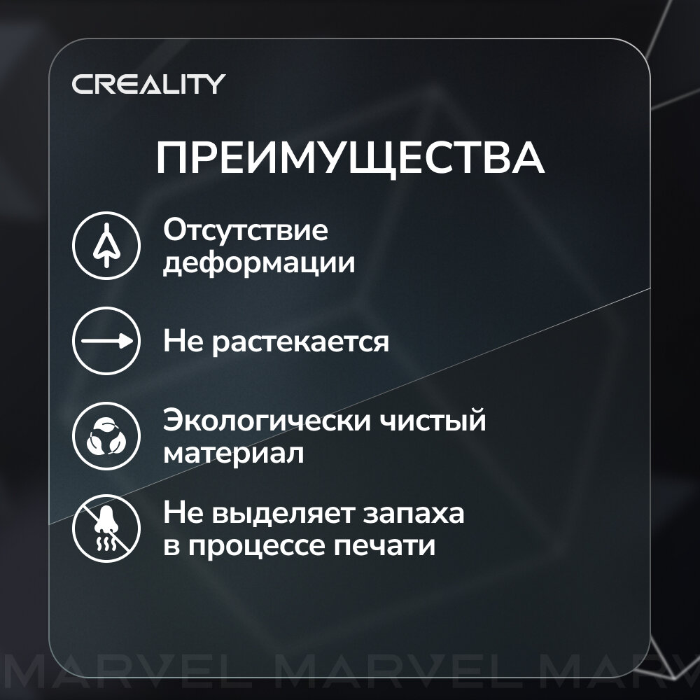 - Простота в эксплуатации и широкая совместимость: CR-PETG совместим со всеми 3D-принтерами из Creality, что упрощает его эксплуатацию.