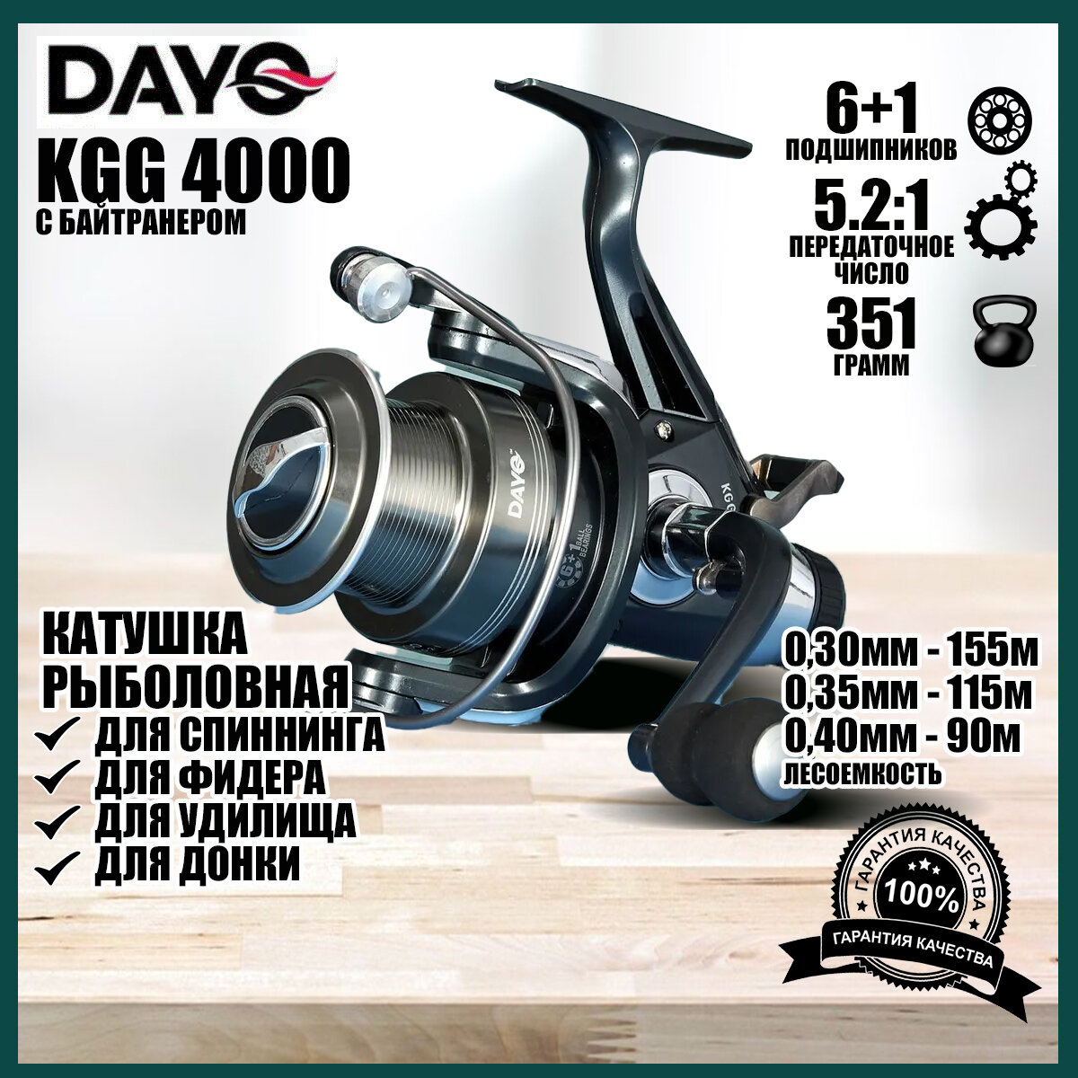 Купить Катушка DAYO KGG 4000, 6+1 подшипников, с байтранером для спиннинга, донки, фидера и карпового удилища рыболовная безынерционная с передним и задним фрикционом с доставкой по всей России. Катушка DAYO KGG 4000, 6+1 подшипников, с байтранером для спиннинга, донки, фидера и карпового удилища рыболовная безынерционная с передним и задним фрикционом: сравнение цен, характеристики, фото, актуальное наличие и цены.
