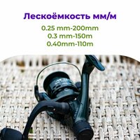 - Лескоёмкость шпули 0.25mm-200m, 0.30mm-150m, 0.40mm-100m (мм/м);