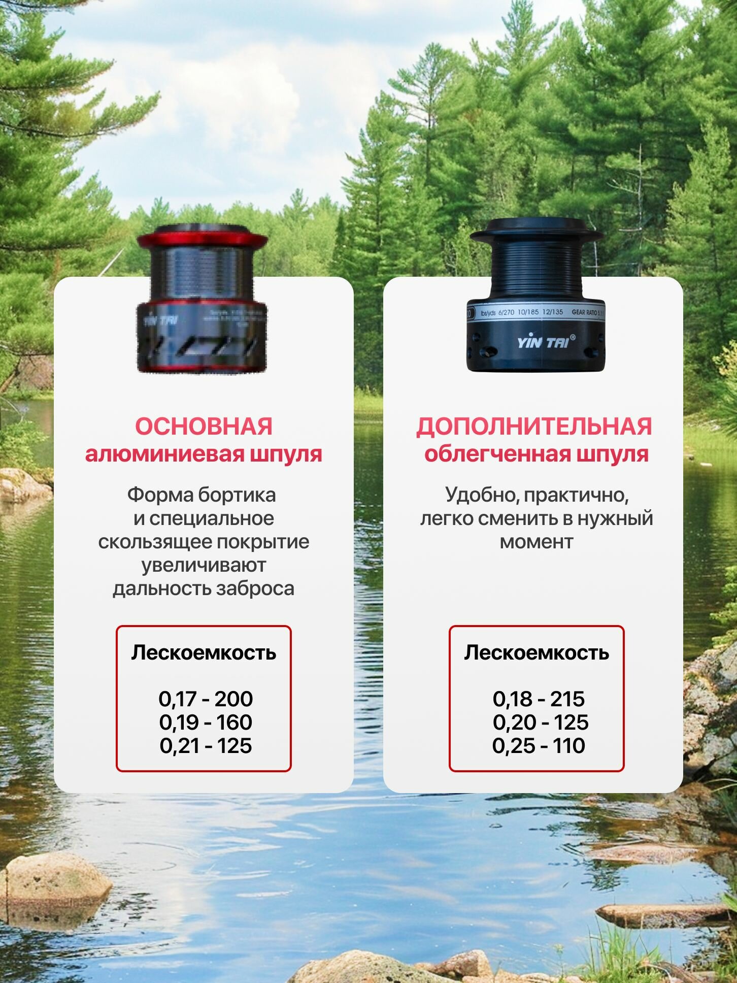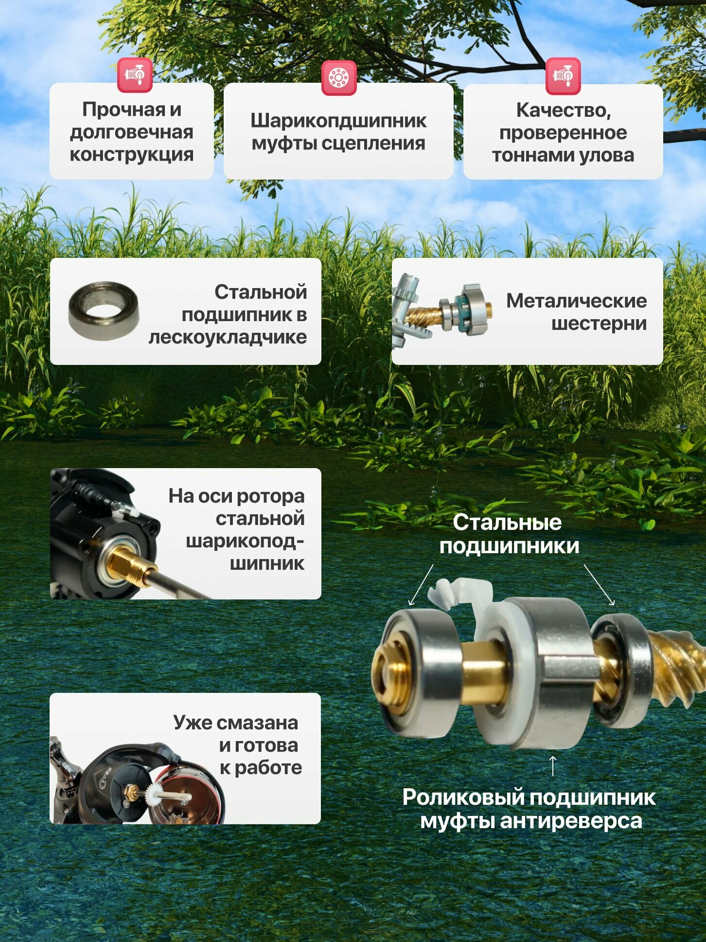 Эта катушка обладает высокой надежностью и прочностью, что делает ее отличным дополнением к рыболовному набору. Безынерционная конструкция катушки обеспечивает плавное и стабильное вращение, что позволяет эффективно работать с различными типами лески и приманок. Наличие мощного механизма позволяет уверенно набирать рыбу, добавляя уверенности каждому забросу.