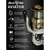 Катушка для спиннинга Black Side Aviator 2000FD (7+1 подш.) - идеальный выбор для любителей рыбалки, которые ценят качество и надежность. Эта катушка для удочки сочетает в себе передовые технологии и прочные материалы, что делает её отличным помощником в любом рыболовном приключении.