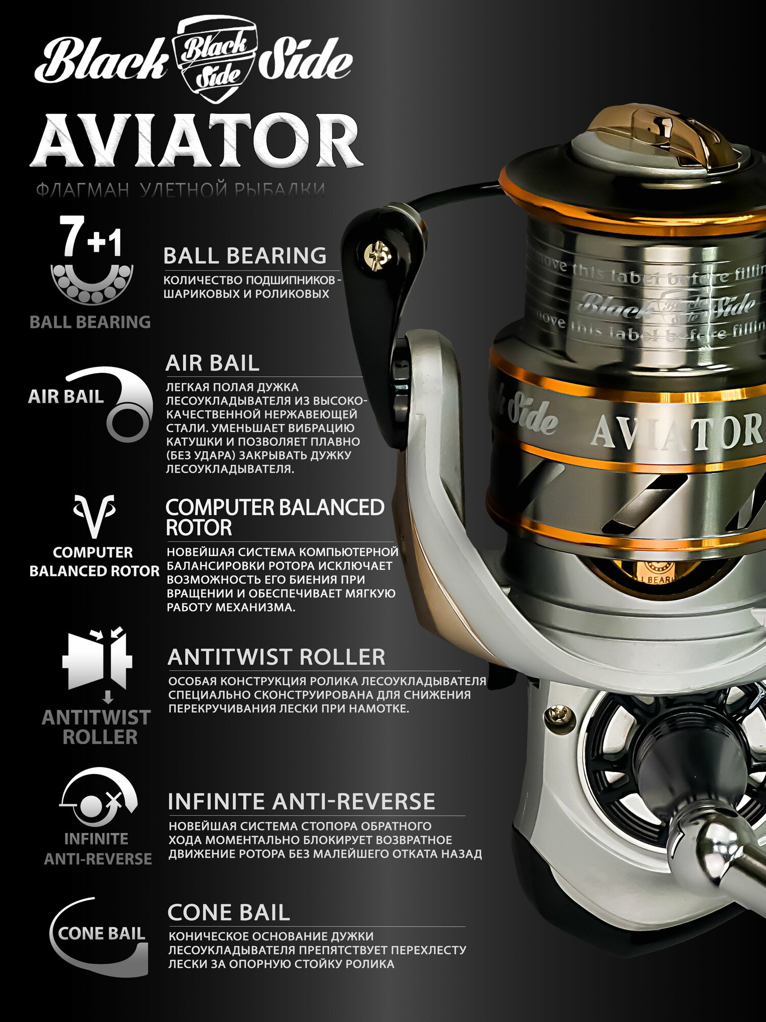 Пусть ваше рыболовное снаряжение будет на высоте с катушкой для спиннинга Black Side Aviator 2000FD.