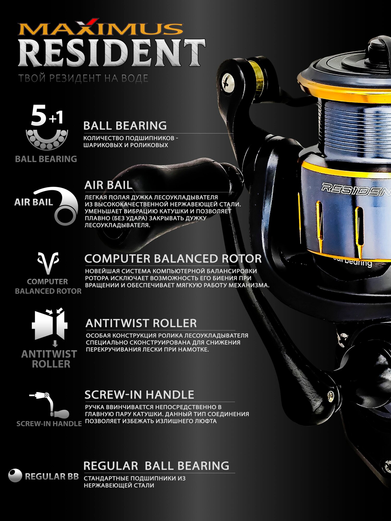Купить Катушка для спиннинга Maximus Resident 1000 (5+1 подш), катушка для удочки, фидера, рыболовная с доставкой по всей России.
