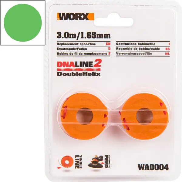 Сменная катушка и леска для триммера WG150E WORX WA0004 - это высококачественный комплект, который включает в себя две катушки с леской.