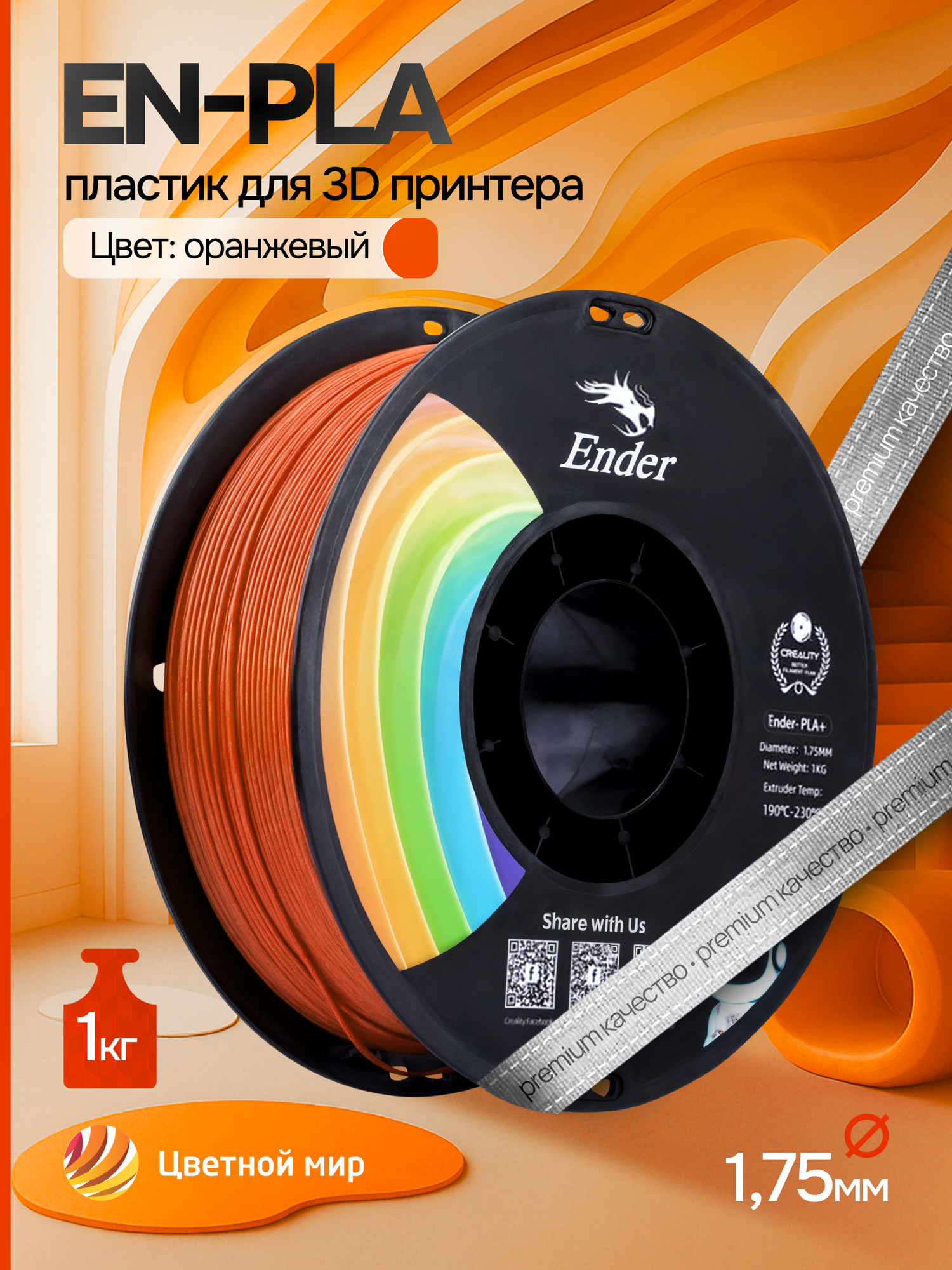 Купить Катушка EN-PLA+ пластика Creality 1.75 мм 1кг, оранжевый с доставкой по всей России.